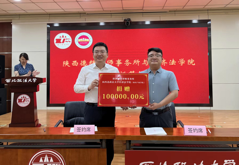 陜西德輝律師事務所向經濟法學捐贈專項基金,并簽訂科研教學實訓基地協議。