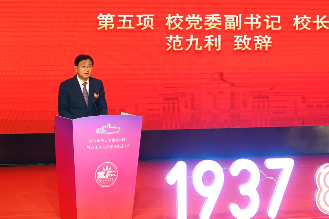 校慶是回顧歷史、總結(jié)經(jīng)驗(yàn)的重要時(shí)刻,也是思考發(fā)展、謀劃未來(lái)的關(guān)鍵時(shí)點(diǎn)。校長(zhǎng)范九利在講話中向長(zhǎng)期以來(lái)關(guān)心支持學(xué)校發(fā)展的社會(huì)各界人士、廣大校友表示衷心的感謝。他指出,85年來(lái),學(xué)校堅(jiān)守為黨育人、為國(guó)育才的初心使命,根植紅色基因、弘揚(yáng)光榮傳統(tǒng),堅(jiān)守報(bào)國(guó)信念、培養(yǎng)優(yōu)秀人才,胸懷國(guó)之大者、服務(wù)國(guó)家戰(zhàn)略,艱苦奮斗、勇毅前行,在三秦大地上繪就了壯闊畫(huà)卷。站在新的征程上,我們要站位大局,在融入新發(fā)展格局中抓住新機(jī)遇,不斷探索教學(xué)研究型高水平大學(xué)建設(shè)的新路徑;要堅(jiān)守本位,培養(yǎng)創(chuàng)新人才,努力培養(yǎng)堪當(dāng)民族復(fù)興大任的時(shí)代新人;要以學(xué)科為基,不斷深化學(xué)科內(nèi)涵,持續(xù)提升辦學(xué)實(shí)力,推動(dòng)學(xué)校在人才培養(yǎng)、科學(xué)研究、社會(huì)服務(wù)等方面拓寬途徑、筑高平臺(tái)、提升品牌;要以人才為本,深入實(shí)施人才強(qiáng)校戰(zhàn)略,讓人才隊(duì)伍大起來(lái)、活起來(lái)、強(qiáng)起來(lái);要勇攀高峰,服務(wù)國(guó)家戰(zhàn)略,促進(jìn)高水平科研成果產(chǎn)出,圍繞以高質(zhì)量發(fā)展推進(jìn)中國(guó)式現(xiàn)代化,給出更多西法大答案;要依法治校,推進(jìn)治理創(chuàng)新,以治理賦能發(fā)展,打造新時(shí)代高水平大學(xué)治理體系的新樣板。