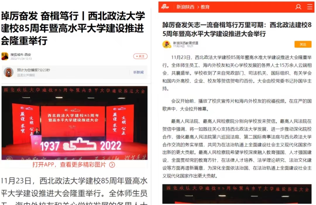 11月23日,西北政法大學(xué)建校85周年暨高水平大學(xué)建設(shè)推進(jìn)大會(huì)隆重舉行。全體師生員工、海內(nèi)外校友和關(guān)心學(xué)校發(fā)展的各界人士云端相會(huì),共襄盛舉。學(xué)校收到了來(lái)自黨政部門(mén)、司法機(jī)關(guān)、國(guó)際組織、有關(guān)學(xué)會(huì)和國(guó)內(nèi)外高校、企業(yè)、校友等賀信賀電。大會(huì)由校黨委書(shū)記孫國(guó)華主持。