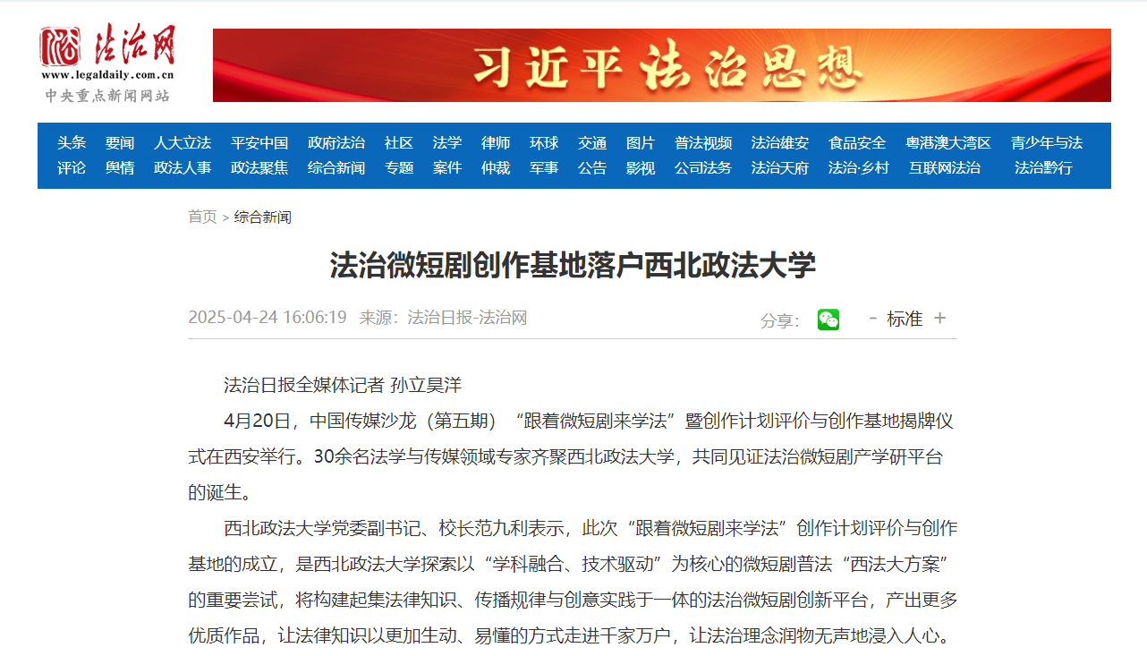 【法治網(wǎng)】法治微短劇創(chuàng)作基地落戶西北政法大學(xué) http://www.legaldaily.com.cn/index_article/content/2025-04/24/content_9172642.html
