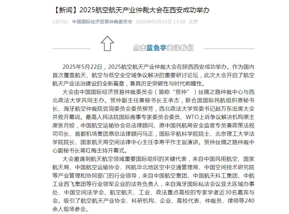 【中國國際經濟貿易仲裁委員會】2025航空航天產業仲裁大會在西安成功舉辦:https://mp.weixin.qq.com/s/w2Uslw8LxfiDFwUH_Pq_5Q