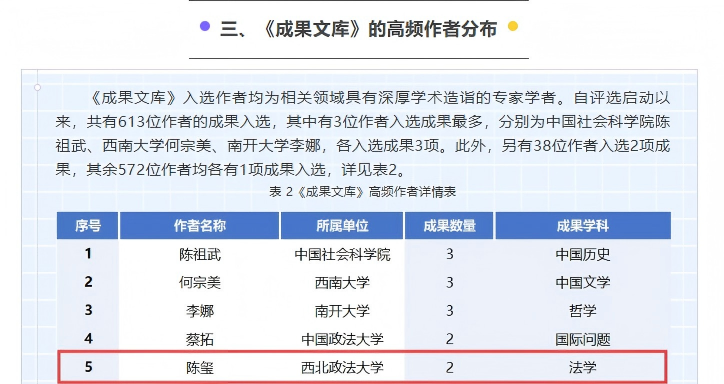 近日,中國人文社會科學綜合評價研究院發(fā)布 2010-2024 年《國家哲學社會科學成果文庫》(以下簡稱《成果文庫》)數(shù)據(jù)統(tǒng)計概覽,法治學院 法律碩士教育學院陳璽教授憑借在唐宋法制史領(lǐng)域的深厚學術(shù)積淀與卓越研究成果,成功入選《成果文庫》高頻作者名單,其學術(shù)實力與研究影響力獲國家級權(quán)威學術(shù)平臺高度認可,也為我校法學學科建設再添亮眼成績。