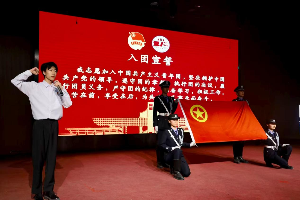 在入團儀式上,面對團旗,國家安全學院(反恐怖主義法學院)的常瑞峰同學帶領全體團員莊嚴宣誓。隨后老團員代表為新入團團員代表佩戴團徽。這一儀式激發(fā)了我校共青團員的責任感與使命感,增強了新團員對團組織的認同感和歸屬感。