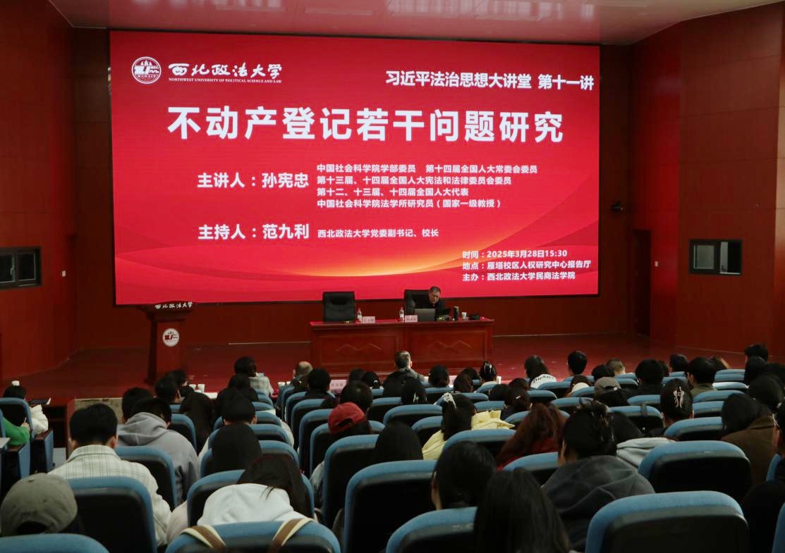 3月28日,“習(xí)近平法治思想大講堂”第十一講在雁塔校區(qū)人權(quán)研究中心報(bào)告廳舉行。中國(guó)社會(huì)科學(xué)院學(xué)部委員、第十四屆全國(guó)人大常委會(huì)委員、第十三屆、十四屆全國(guó)人大憲法和法律委員會(huì)委員、第十二、十三屆、十四屆全國(guó)人大代表、中國(guó)社會(huì)科學(xué)院法學(xué)所研究員孫憲忠教授應(yīng)邀為我校師生作題為《不動(dòng)產(chǎn)登記若干問題研究》的講座。校長(zhǎng)范九利主持。