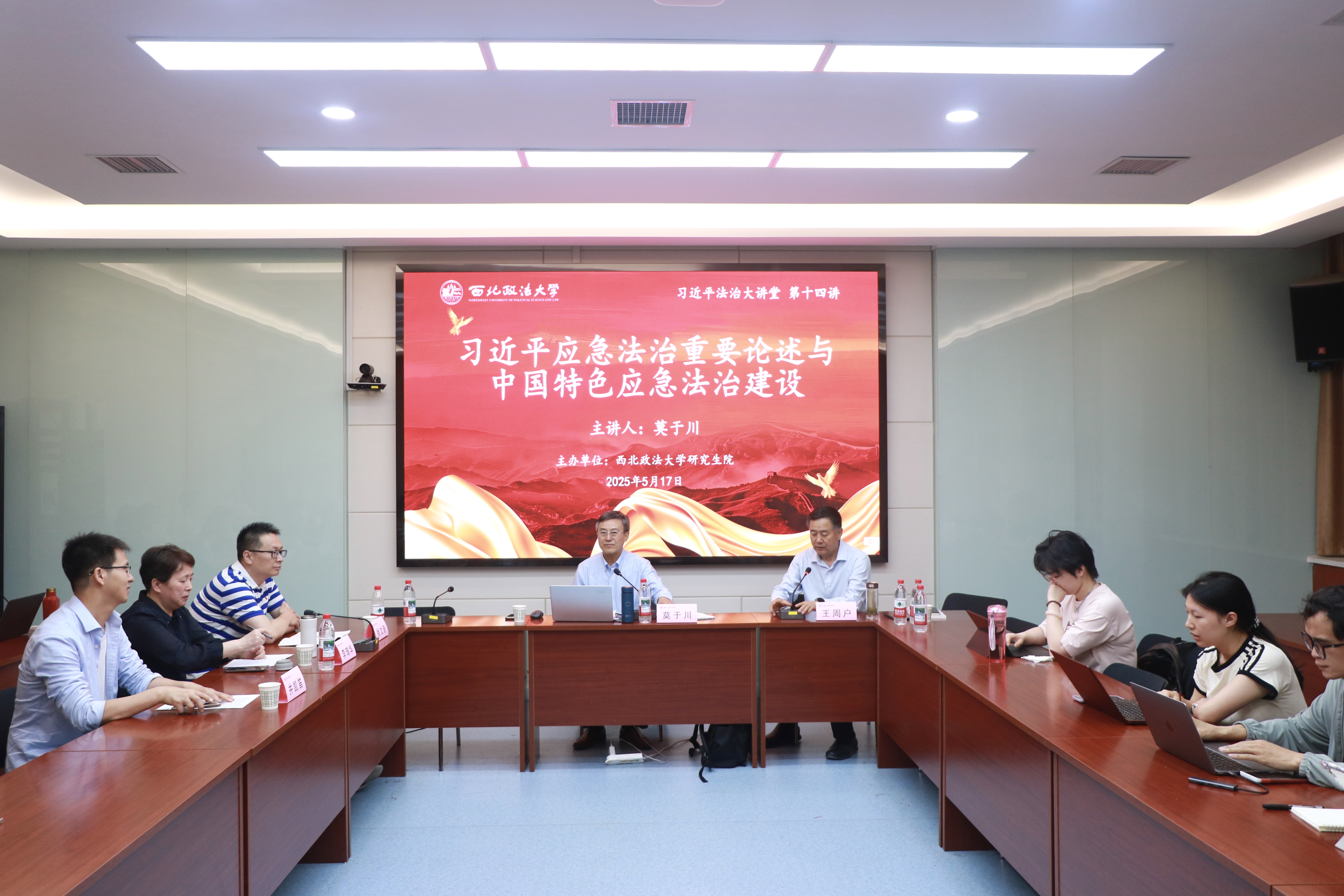 5月17日下午,由研究生院主辦的“習近平法治思想大講堂”在西北政法大學雁塔校區人權研究中心會議室順利舉行。中國人民大學法學院莫于川教授作題為《習近平應急法治重要論述與中國特色應急法治建設——解讀〈中華人民共和國突發事件應對法〉大修工程的創新亮點和后續課題》講座,學校地方政府法治建設研究中心主任王周戶教授主持,西安仲裁委員會副主任、秘書長徐文新,李瑰華教授、井凱笛副教授與談。