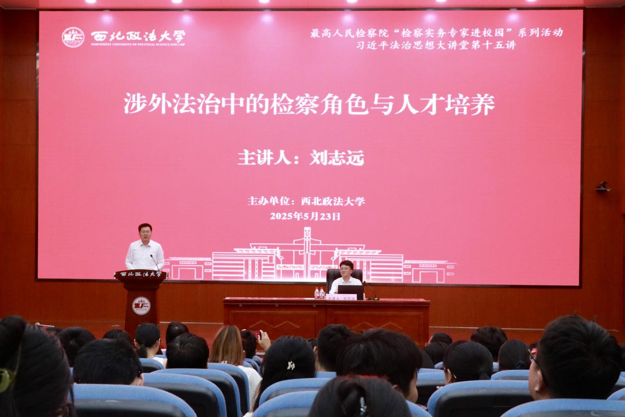 5月23日下午,由研究生院主辦,檢察公益訴訟研究中心(最高檢檢察公益訴訟研究基地)、刑事法學院協辦的“最高人民檢察院‘檢察實務專家進校園’系列活動”暨“習近平法治思想大講堂”在我校雁塔校區人權研究中心報告廳順利舉行。最高人民檢察院國際合作局局長劉志遠作題為《涉外法治中的檢察角色與人才培養》報告,校長范九利主持,陜西省人民檢察院副檢察長張克禎、郭潔教授與談。