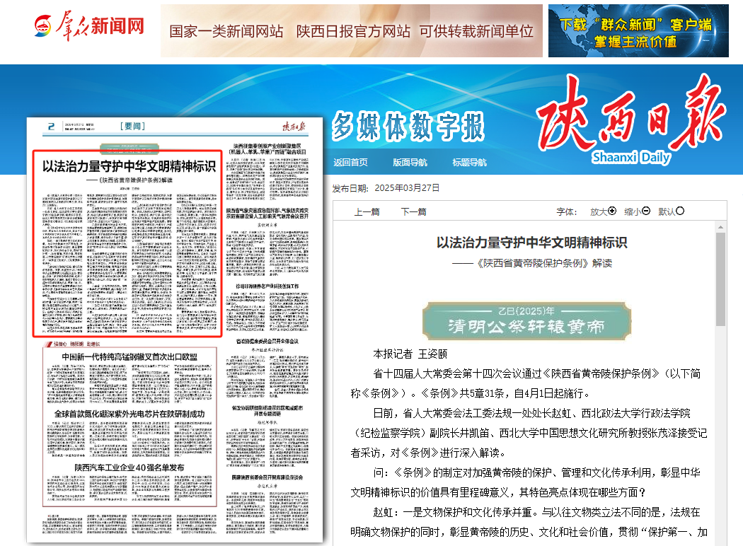【陜西日報】以法治力量守護中華文明精神標識——《陜西省黃帝陵保護條例》解讀 https://esb.sxdaily.com.cn/pc/content/202503/27/content_902019.html