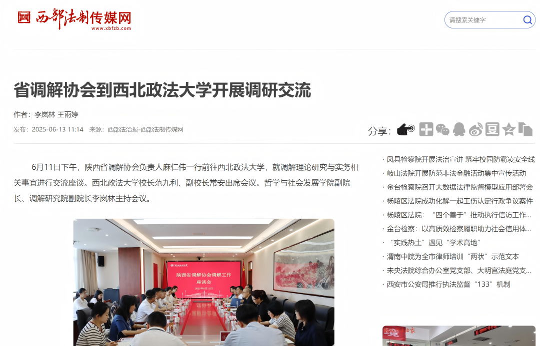 【西部法制傳媒網】省調解協會到西北政法大學開展調研交流 https://www.xbfzb.com/2025-06/13/content_11211107.html