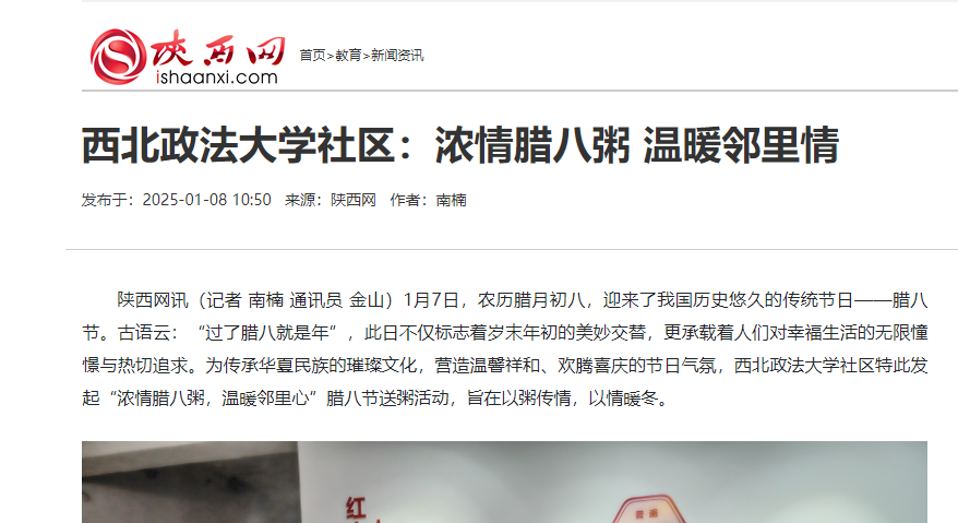 【陜西網】西北政法大學社區:濃情臘八粥 溫暖鄰里情https://www.ishaanxi.com/c/2025/0108/3333836.shtml