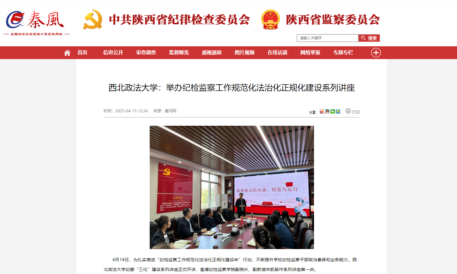 【秦風網】西北政法大學:舉辦紀檢監察工作規范化法治化正規化建設系列講座 https://www.qinfeng.gov.cn/info/2201/235668.htm