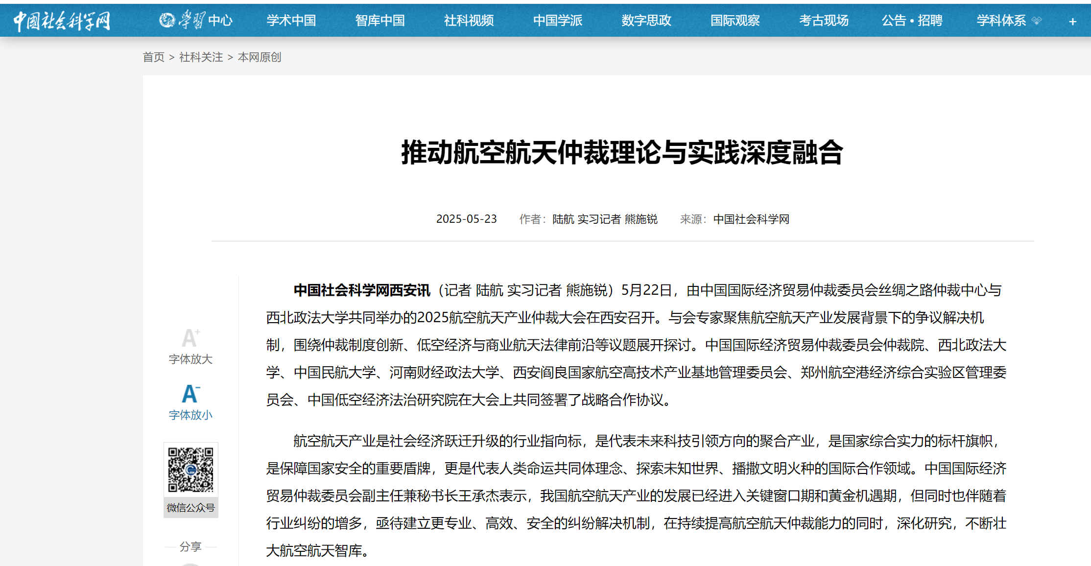 【中國社會科學(xué)網(wǎng)】推動航空航天仲裁理論與實踐深度融合 https://www.cssn.cn/skgz/bwyc/202505/t20250523_5875395.shtml