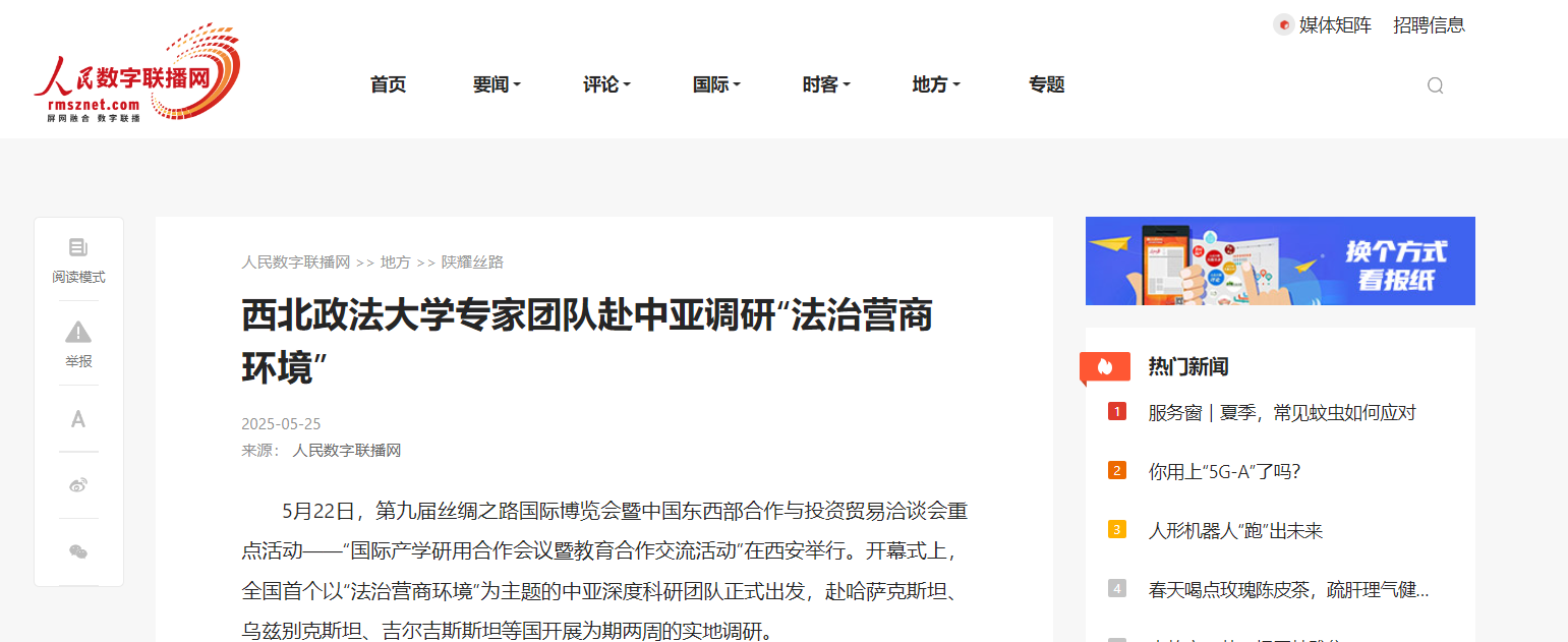 【人民數字聯播網】西北政法大學專家團隊赴中亞調研“法治營商環境” https://sx.rmsznet.com/detail/3355/446764