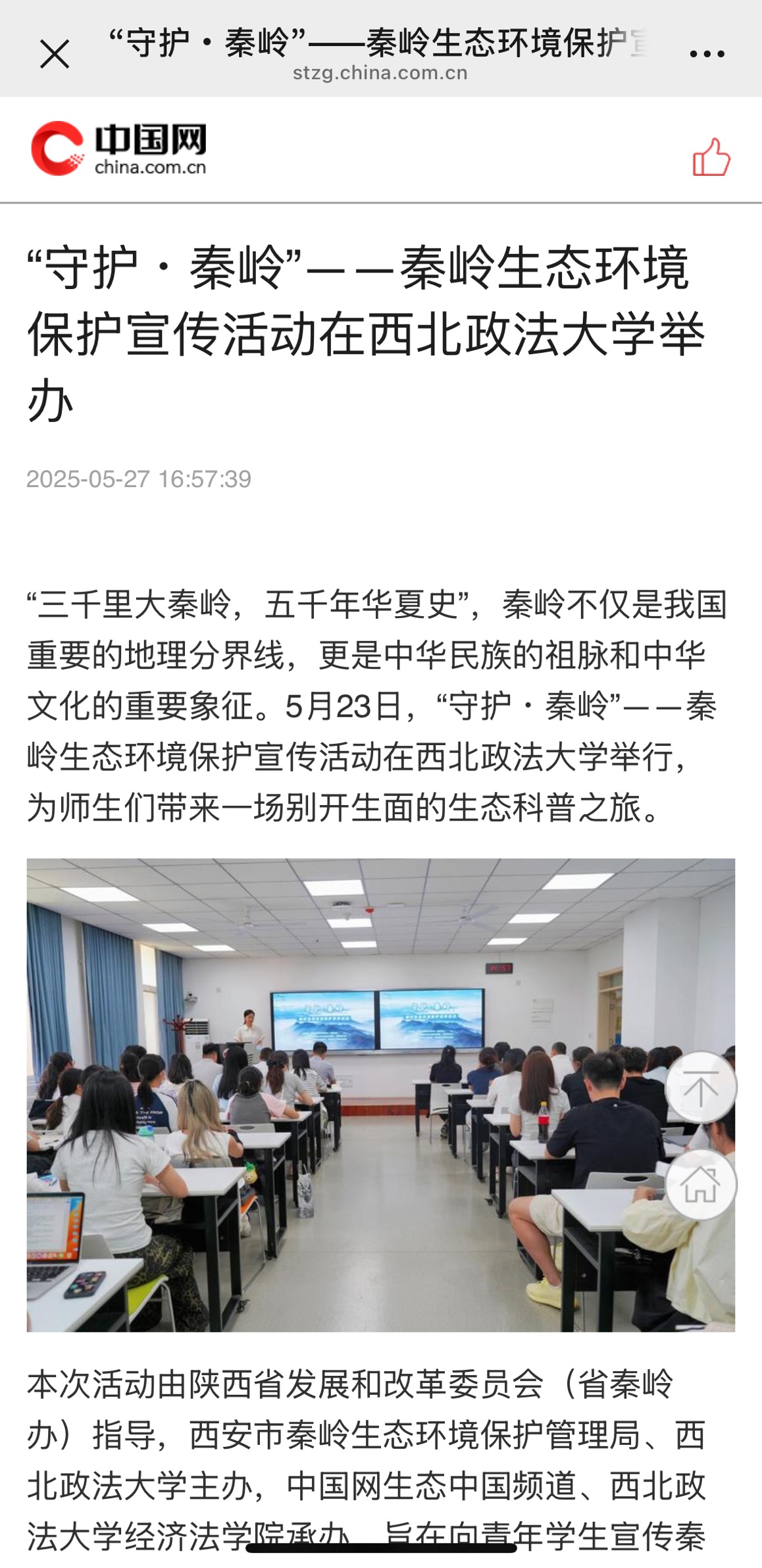 【中國網(wǎng)】“守護(hù)?秦嶺”——秦嶺生態(tài)環(huán)境保護(hù)宣傳活動(dòng)在西北政法大學(xué)舉辦 http://stzg.china.com.cn/m/2025-05/27/content_43127179.htm