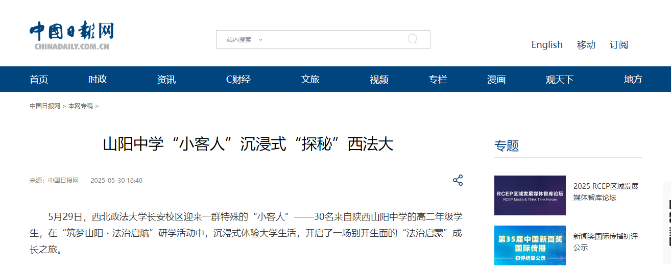 【中國日報網】山陽中學“小客人”沉浸式“探秘”西法大 https://shx.chinadaily.com.cn/a/202505/30/WS68396ee4a310205377035f0f.html