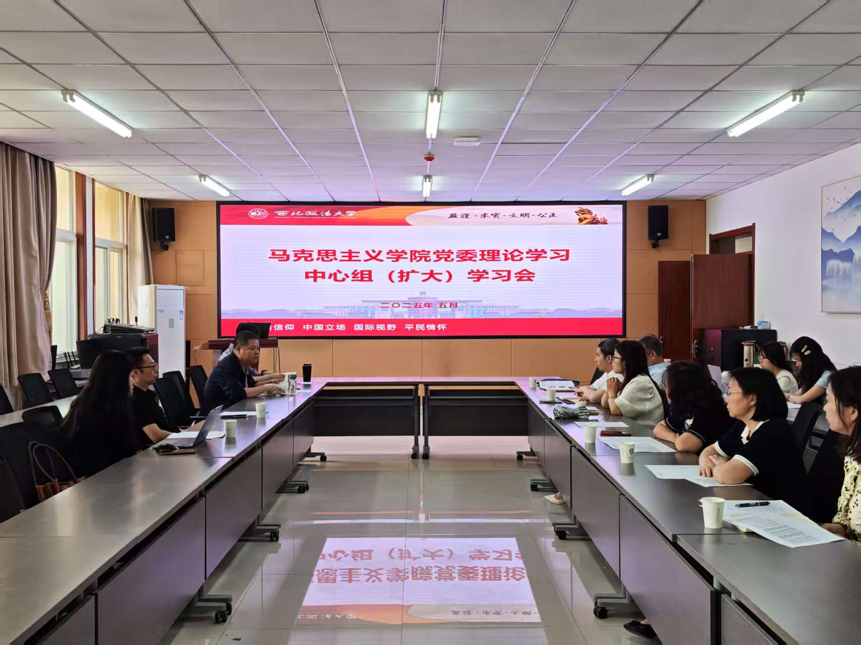 5月7日,馬克思主義學院黨委于誠意樓五樓會議室召開理論學習中心組(擴大)學習會。學院領導班子成員、黨支部書記及科級干部參加會議。會議由學院黨委書記劉馳主持。