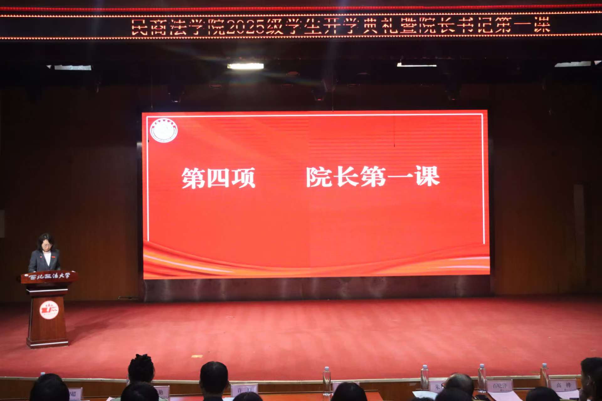 程淑娟為2025級全體新生講授了“院長第一課”。她對2025級新生的到來表示熱烈歡迎,并介紹了學院的學科優勢、師資力量及多元培養模式等基本情況,最后對同學們提出了三點要求:一是厚植家國情懷,牢記責任使命,將個人發展與時代進程緊密聯系,為建設法治中國貢獻力量;二是以專業學習為中心,全面提升自身素養,優先夯實專業基礎,在學習之余鍛煉綜合能力;三是塑造完善人格,爭做全面發展優秀人才,用積極思維應對問題,在實踐中增長才干,她希望同學們保持對生活的熱愛與對法律信念的堅守,秉持善良正直,以不斷求索、勇攀高峰的精神,在民商法學院筑就青春夢想。