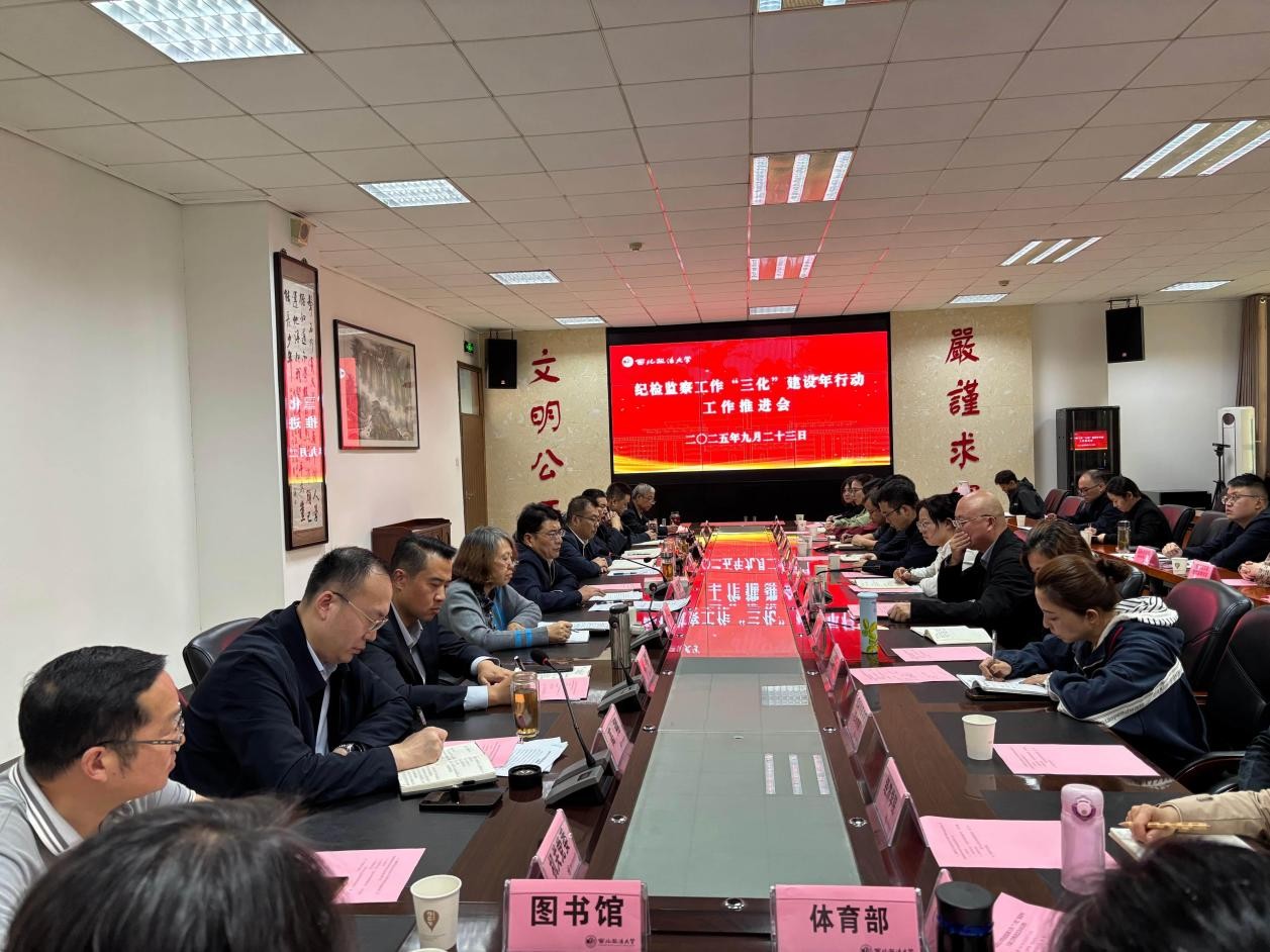 會議學習了習近平總書記近期有關紀檢監察工作重要指示批示精神,傳達了中央紀委國家監委和省紀委監委“三化”建設年行動工作推進會精神,對2025年全省高校紀檢監察工作推進會精神作了通報,并系統總結了春季學期紀檢監察“三化”建設工作,對秋季學期任務進行了再謀劃、再部署。兩名紀檢委員代表作了交流發言。