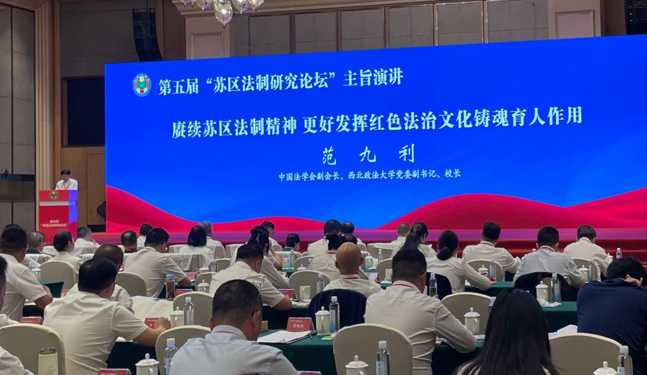 在巴中期間,范九利一行還參加了由四川省法學會主辦的第五屆蘇區(qū)法制研究論壇,中國法學會黨組書記、常務副會長王洪祥,四川省委副書記、政法委書記于立軍在開幕式上致辭,范九利作題為“賡續(xù)蘇區(qū)法制精神 更好發(fā)揮紅色法治文化鑄魂育人作用”的主旨演講。