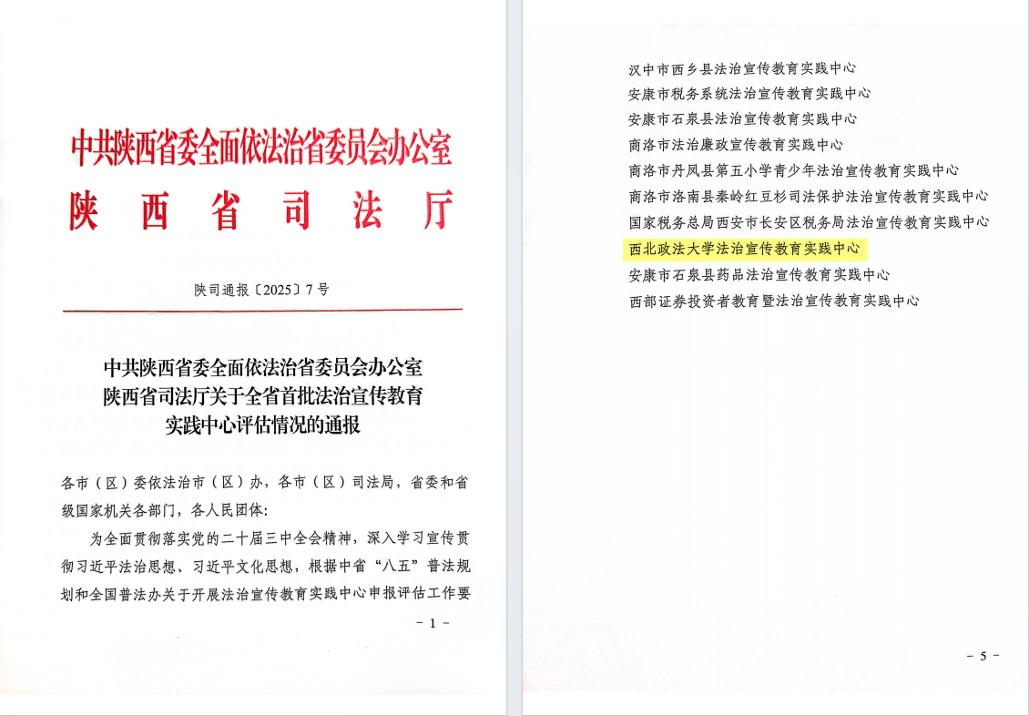 近日,我校法治宣傳教育實踐中心通過陜西省司法廳評估,成為全省首批法治宣傳教育實踐中心之一。