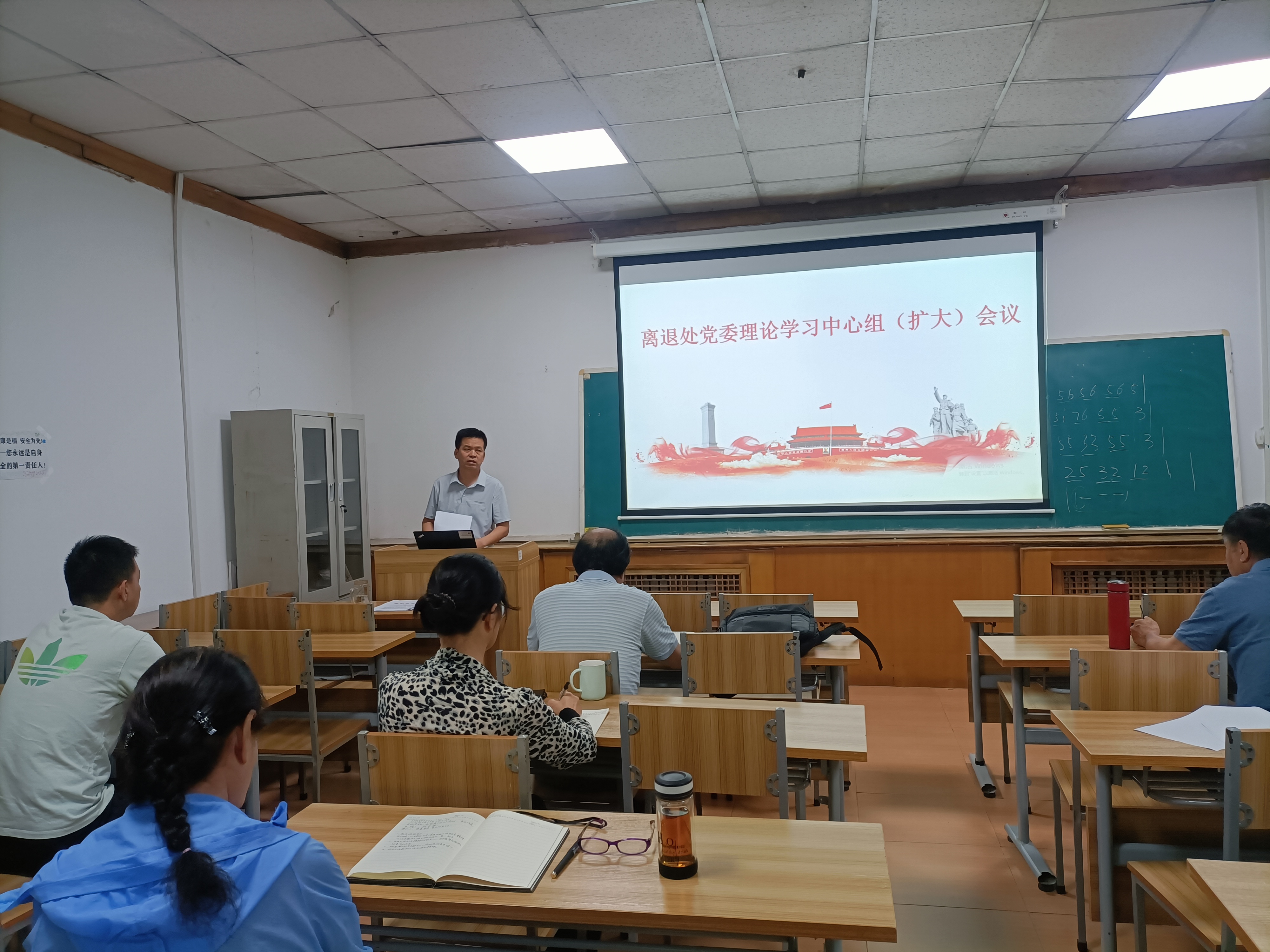 6月25日,離退處黨委在離退休活動中心召開理論學習中心組(擴大)會議,黨委委員、各支部書記、行政黨支部黨員參加。會議由離退處黨委書記陳永康主持。
