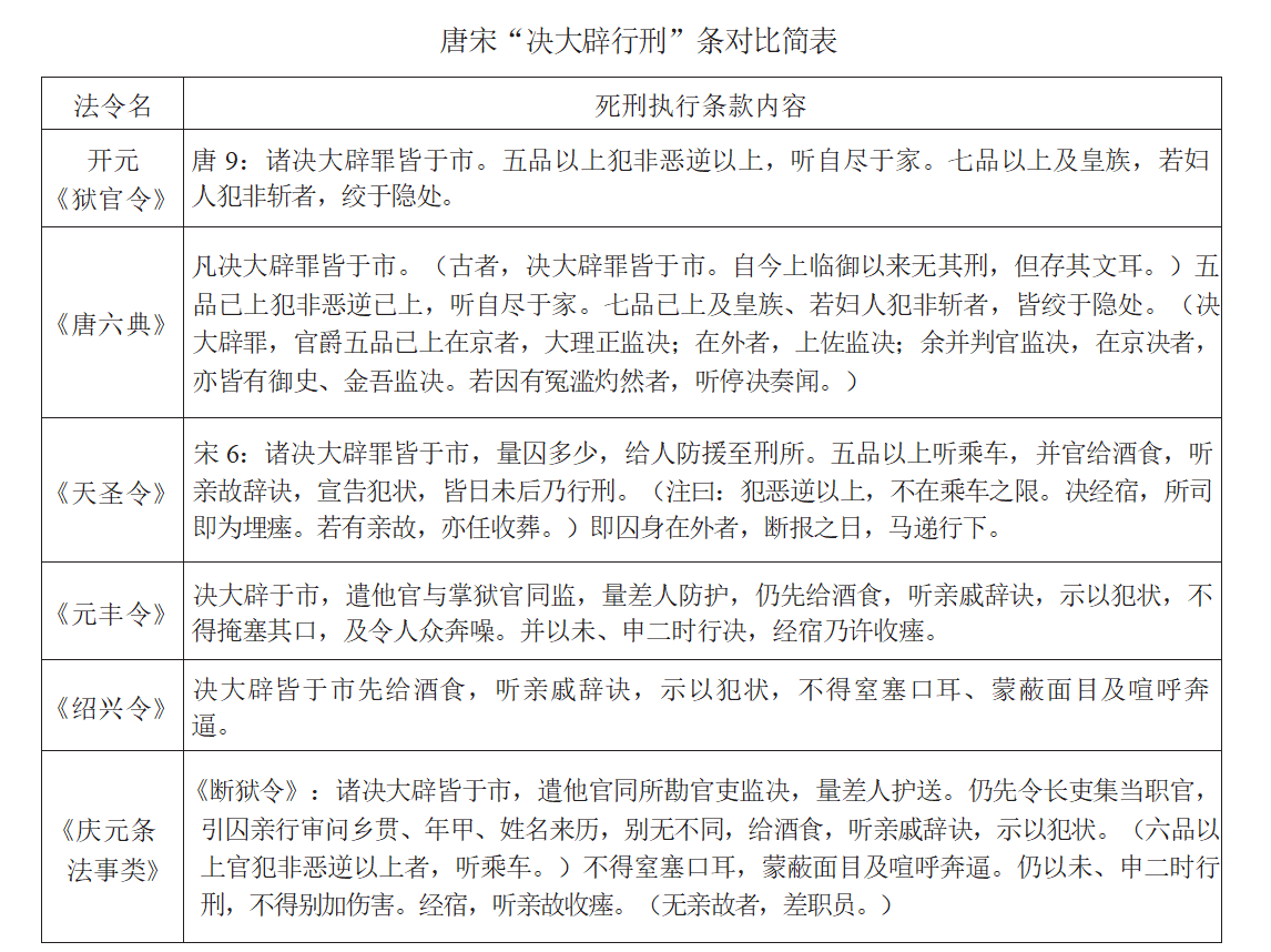 “王族刑于隱者,所以議親;刑不上大夫,所以議貴。”在制度設計層面,賜死是傳統身份因素和君臣觀念在刑罰適用層面的直接投射。以“白冠氂纓,盤水加劍”為典型特征的賜死古禮,經漢儒賈誼、戴德等人疏解,成為古代處置罪臣的重要理論依據,“人君觀此,可以得待臣之禮,而人臣觀此,其有罪者亦知所以自取也”。賜死具有優禮臣下之意,“與議、請、減、贖各條,自屬相符”。在司法程序層面,“采用賜死的方式處治大臣,也是隱晦大臣罪行的一種方式,即為大臣隱惡”。值得注意的是,賜死固然可以視為君主優崇縉紳之禮遇措施,卻也是“大臣多自貴重,不肯屈辱于獄吏”之無奈選擇。唐《獄官令》《唐六典》中,賜死條款接續于“決大辟罪皆于市”條之后,是對常規行刑方式的例外規定,而“刑人于市”的觀念與傳統則可溯至《禮記?王制》。然而,作為傳承久遠的司法規則,“賜死”條款卻在北宋《天圣令》中神秘消失。那么,是否存在今本《天圣令》傳抄遺漏賜死條款的可能?答案卻是否定的。《天圣令》《元豐令》《紹興令》《慶元條法事類》均有“決大辟罪于市”條目,規定官員監刑、乘車酒食、親故辭訣、宣告犯狀、行刑時間、尸身收瘞等內容,《慶元條法事類》進而將乘車就刑范圍擴展為六品以上官犯非惡逆以上者,以上諸條嬗變軌跡清晰可循,自《天圣令》始,唯獨不見明示賜死條款。可以認為,宋代“賜死”條款的廢除,乃是制度層面之專門安排,而非法令文本傳抄疏漏所致。