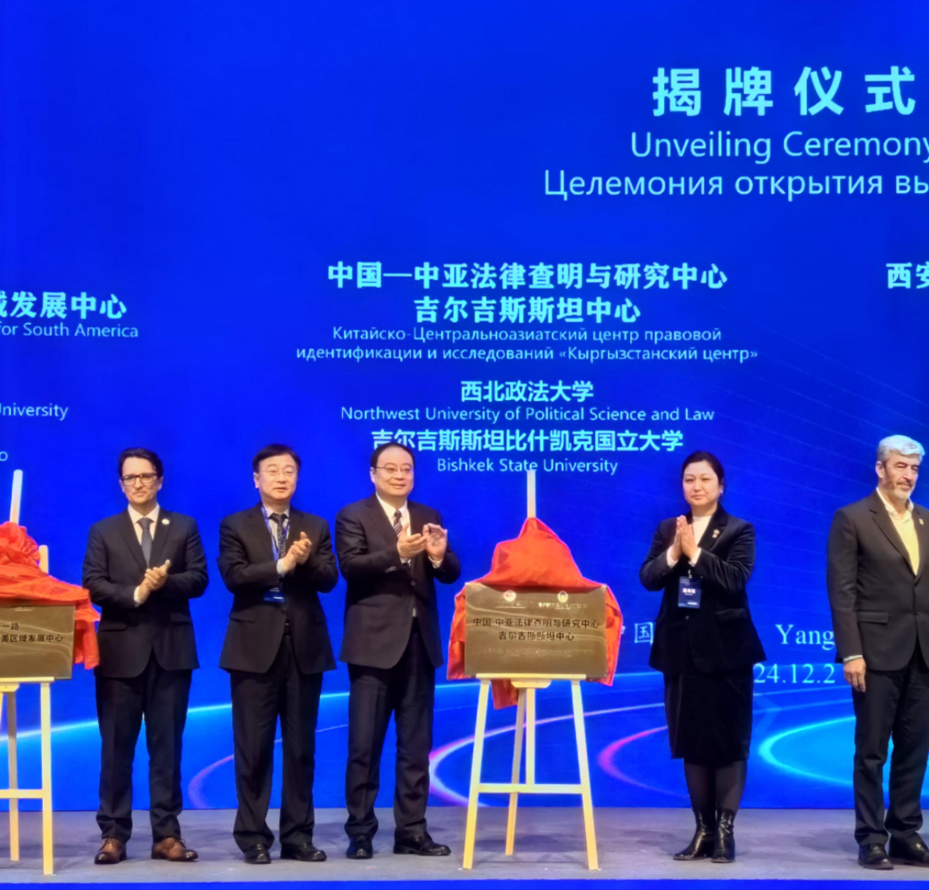 陜西省教育廳廳長王樹聲為我校中國-中亞法律查明與研究中心吉爾吉斯斯坦中心揭牌,范九利與古麗扎特共同簽署兩校合作協(xié)議。