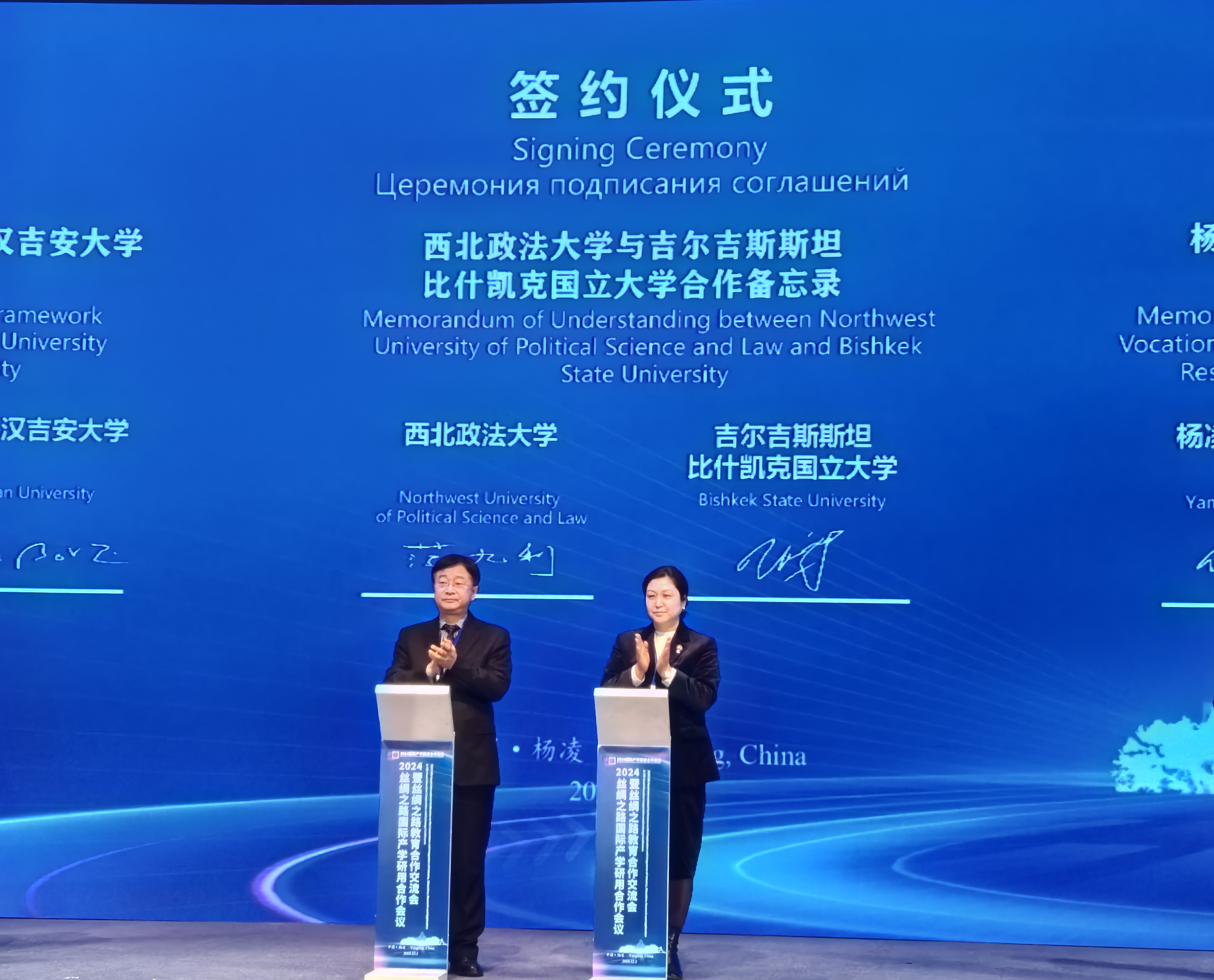 近日,由教育部、陜西省人民政府指導(dǎo),陜西省教育廳、西北農(nóng)林科技大學(xué)主辦,我校參與承辦的“2024絲綢之路國際產(chǎn)學(xué)研用合作會(huì)議暨絲綢之路教育合作交流會(huì)”在楊凌開幕,校長范九利和吉爾吉斯斯坦比什凱克國立大學(xué)副校長古麗扎特?伊薩馬托娃作為合作院校代表共同出席。