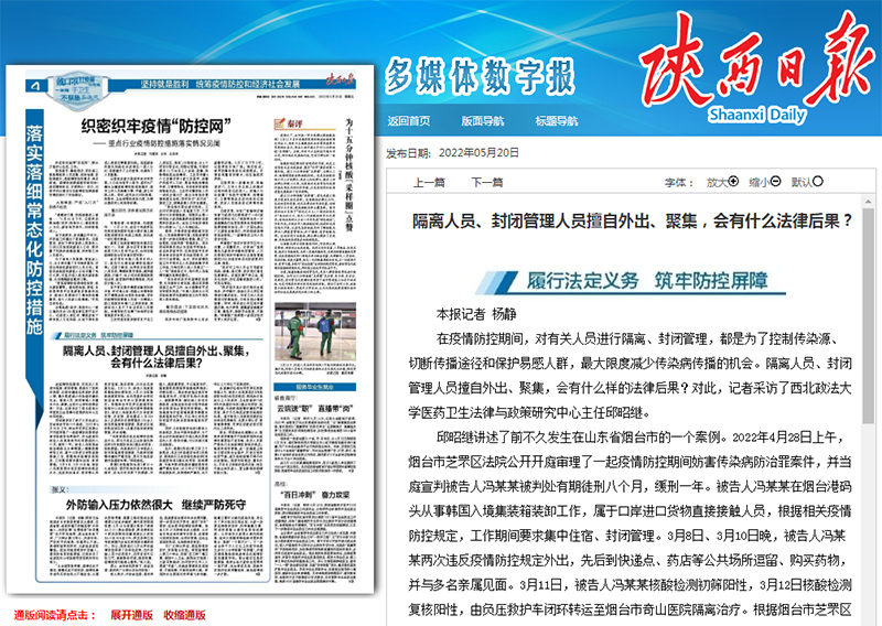 在疫情防控期間,對有關人員進行隔離、封閉管理,都是為了控制傳染源、切斷傳播途徑和保護易感人群,最大限度減少傳染病傳播的機會。隔離人員、封閉管理人員擅自外出、聚集,會有什么樣的法律后果?對此,記者采訪了西北政法大學醫藥衛生法律與政策研究中心主任邱昭繼。
