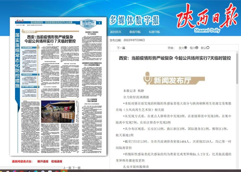 為進一步減少人員流動,降低交叉感染風險,爭取早日實現病例清零,經專家研判,西安市疫情防控指揮部決定自7月6日0時起,在全市公共場所實行7天臨時管控措施。